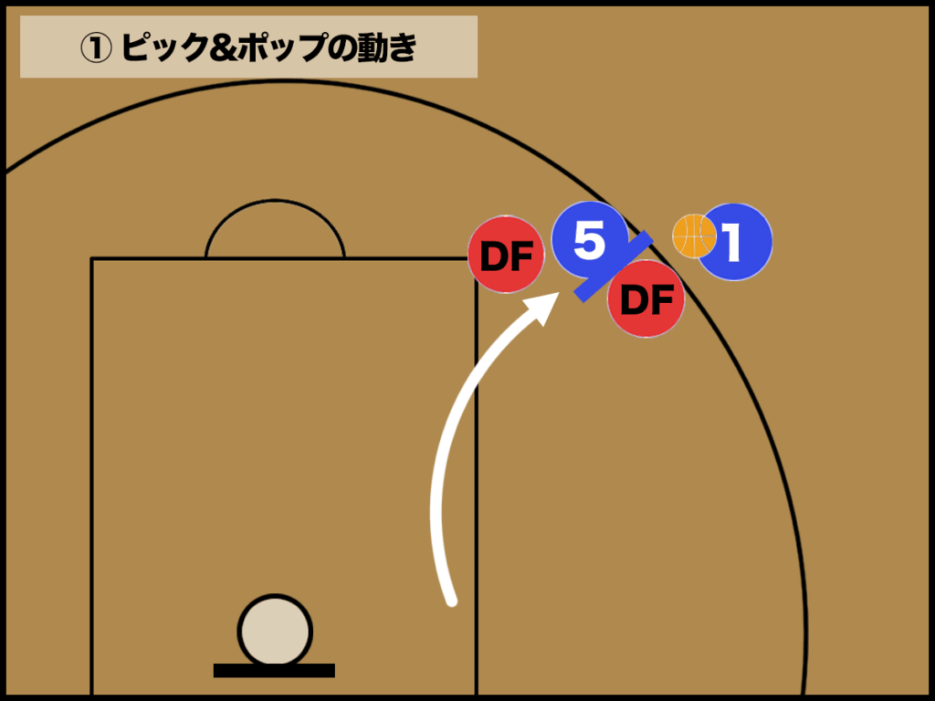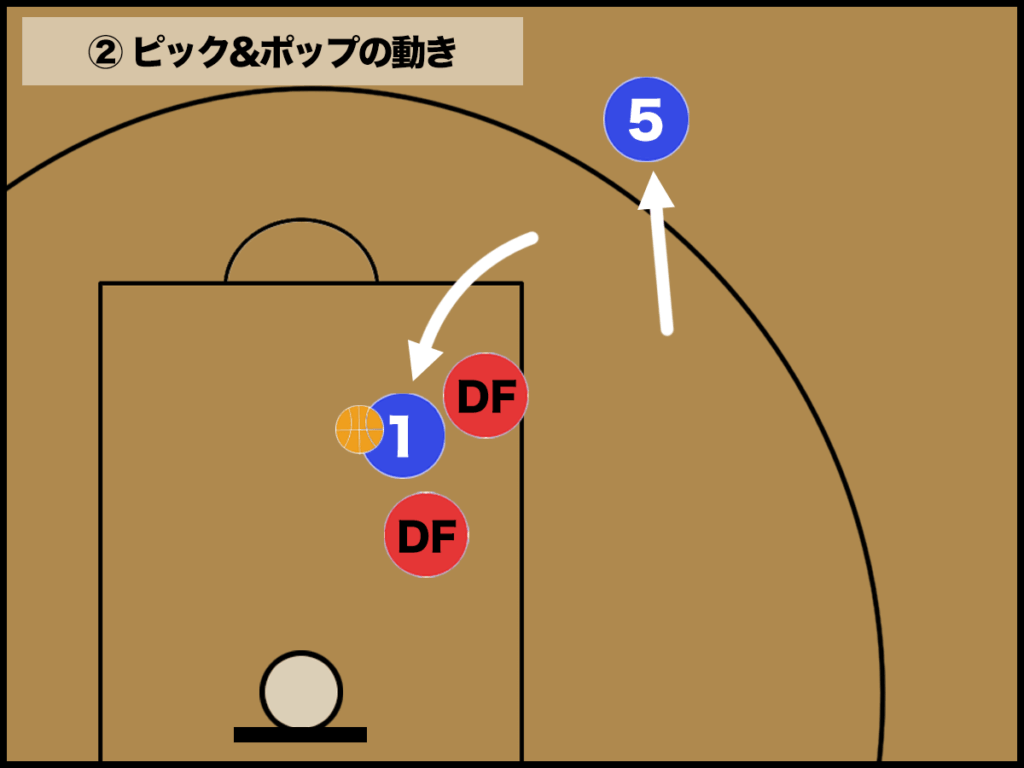 ピック&ロールの応用プレーになり、スクリーナーが外角にポップアウトする戦術を「ピック&ポップ」と呼びます。