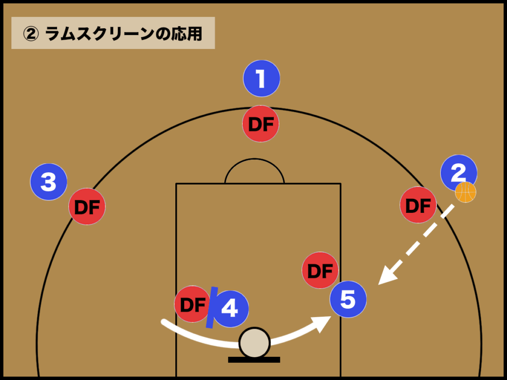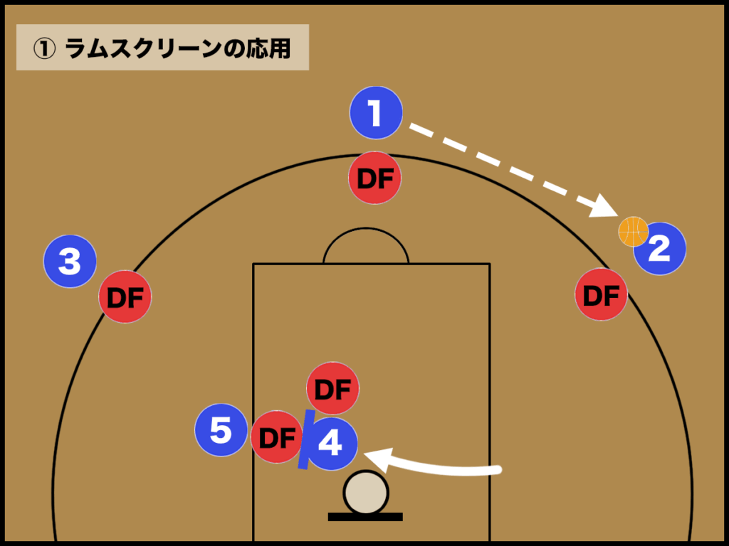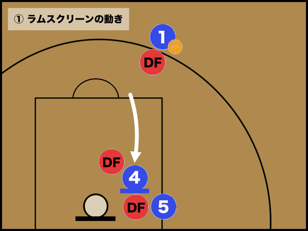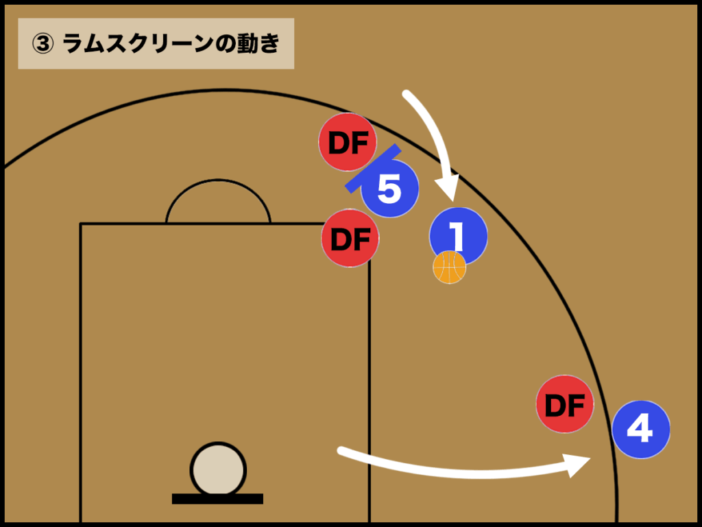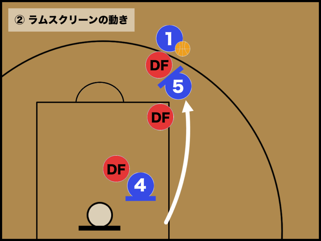 オンボールスクリーンのスクリーナーに対して、予めオフボールスクリーンを作る戦術が「ラムスクリーン」になります。